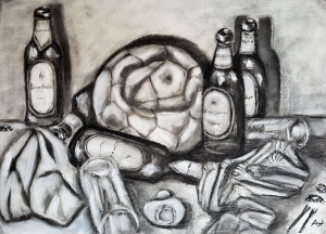 17/030: Abseits, Kohle auf Papier, Blatt ohne Rahmen 30 x 40 cm