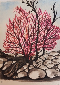 18/019: Rote Koralle (Lanzarote), Aquarell, Blatt ohne Rahmen 30 x 20 cm