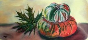 17/036: Die Tomaten aus Nachbars Garten, Pastellkreide auf Papier, im Rahmen mit Passepartout ca. 41 x 50 cm – VERKAUFT