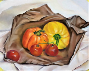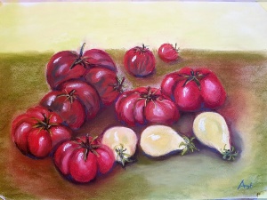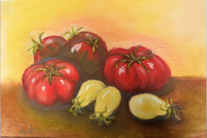 17/037: Tomatenparade, Pastellkreide auf Papier, Blatt ohne Rahmen 30 x 40 cm