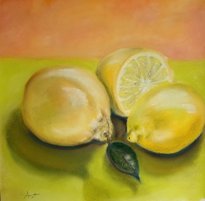 17/039: Zitronen I., Pastellkreide auf Papier, im professionellen Rahmen mit Passepartout ca. 55 x 53 cm